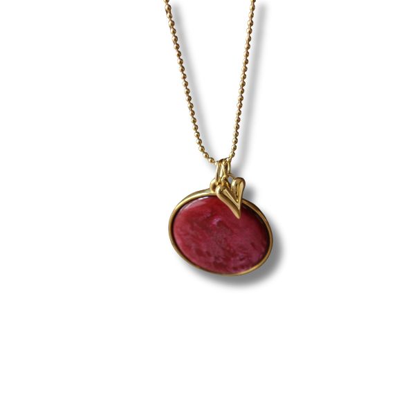Der kleine goldfarbene Herz Anhänger aus Edelstahl kann perfekt mit dem großen Qoss Anhänger Sylvia kombiniert werden, sodass ein echtes Highlight entsteht.