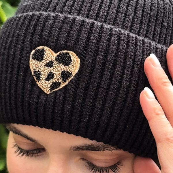 Warme, weiche Strickmütze mit trendigem Leo-Herz-Detail – ein absoluter Hingucker für die kalte Saison. Erhältlich in mehreren Farben und perfekt, um jedem Winterlook das gewisse Etwas zu verleihen.