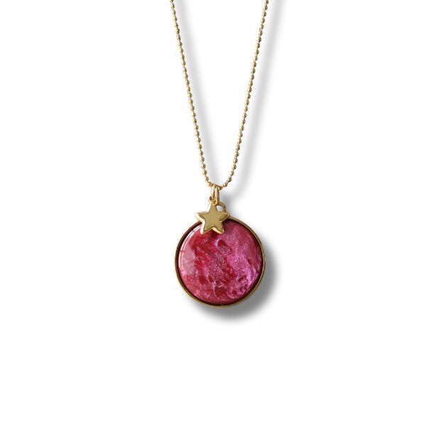 Der kleine goldfarbene Stern Anhänger aus Edelstahl kann perfekt mit dem großen Qoss Anhänger Sylvia kombiniert werden, sodass ein echtes Highlight entsteht.